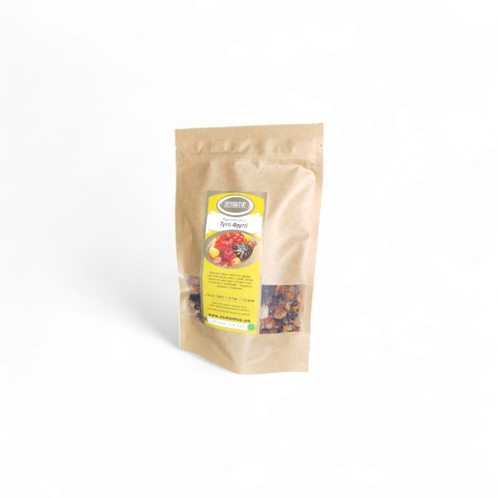 Чай фруктова суміш "Тутті-Фрутті" 100г - це чудовий спосіб насолодитися смаком та ароматом свіжих тропічних фруктів прямо у вашому домі. Збагачений шматочками ананасу, манго, папайї, яблука, мускатного винограду та суданської рози, цей напій принесе вам відчуття літа та екзотики навіть у найсірішу погоду.